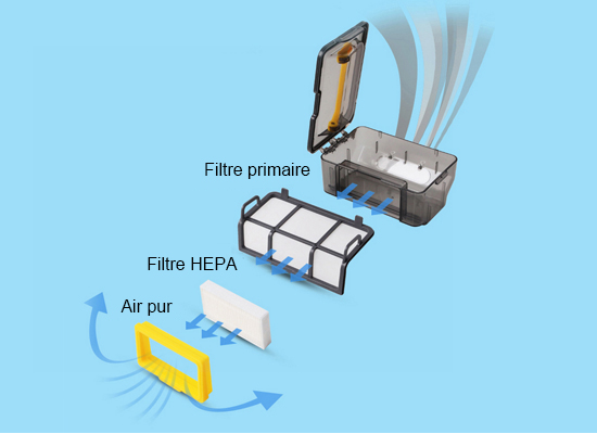 La grande taille de la poubelle permet au robot de nettoyer une grande surface à la fois pour ne pas avoir à la nettoyer fréquemment. La poubelle est également lavable pour rester hygiénique et propre.